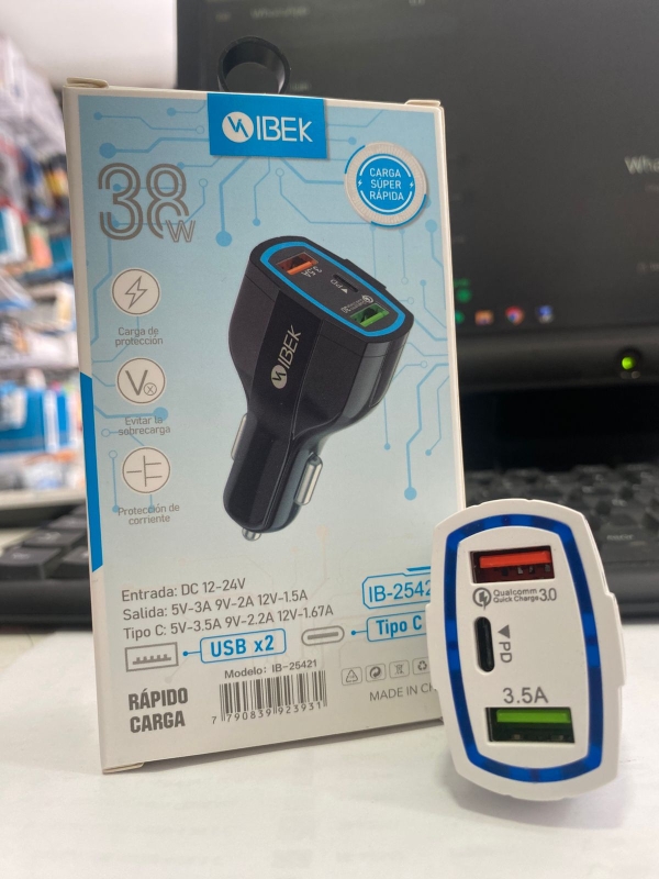 CARGADOR PARA AUTO IBEK 38W IB-25421